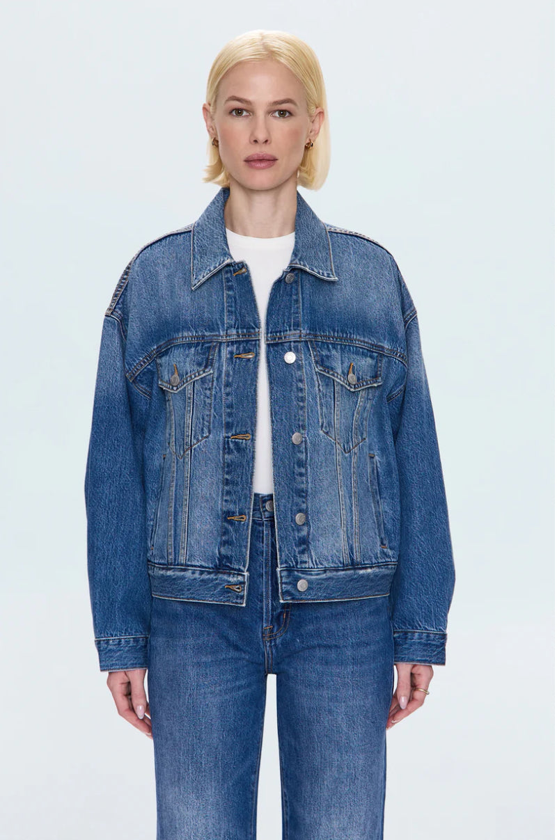 The trucker jacket that gets it right. Harley delivers classic denim jacket styling with a relaxed fit that feels effortlessly cool and never stiff. Crafted from 100% cotton non-stretch denim that develops character with every wear. Roulette brings sophisticated versatility with its medium blue wash that feels lived-in and loved from day one.