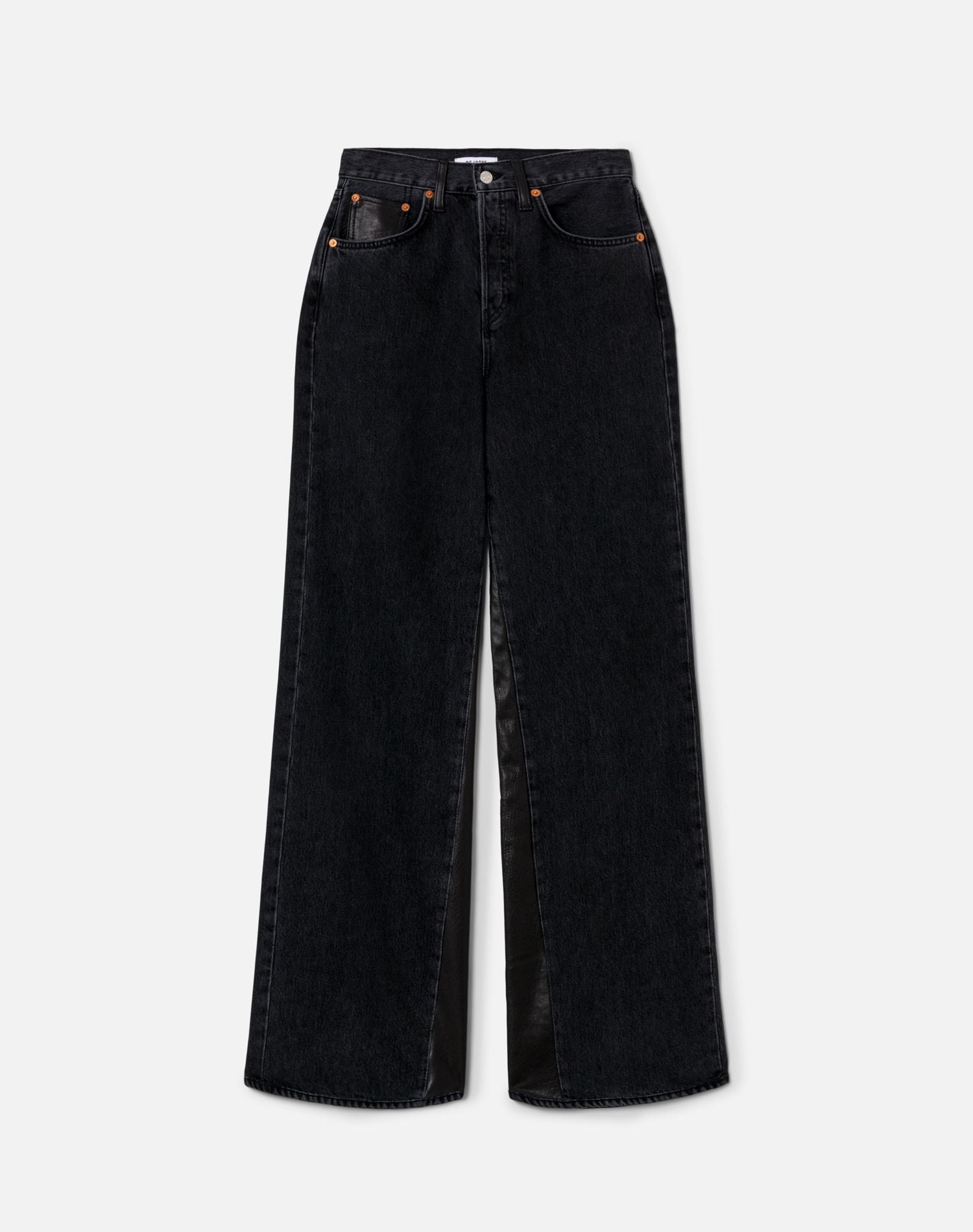 High rise, wide leg fit, with mixed media pockets